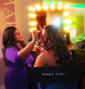 Friday: Around noon we arrived at the fun and fabulous Lifestyle Retreat Lounge. I decided on a long blue and red halter sundress with embellished crystal sandals for the occasion. As we maneuvered through excited fashionistas, we were confronted with rows of decadent deserts, h’orderves, and complimentary gifts for the guests. Just as a diamond sparkles in the sun, my eyes were immediately drawn to dazzling jewelry on a table. A diversity of beautiful