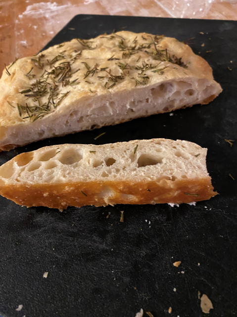 Place the pans in the oven and turn the temperature down to 450 degrees. Bake for 25 minutes. The tops should be golden brown. Remove and let cool on a rack for 30 minutes before cutting. Brush the tops with any left-over oil.